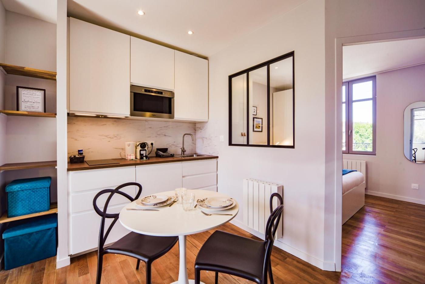 Appartement 1 Chambre Deluxe. Featuring a private entrance, this apartment also consists of 1 bedroom, a seating area and 1 bathroom with a shower and a hairdryer. The fully equipped kitchen features a stovetop, a refrigerator, kitchenware and an oven. The apartment provides a washing machine, a tea and coffee maker, a dining area, a wardrobe and a flat-screen TV with streaming services. The unit offers 1 bed.