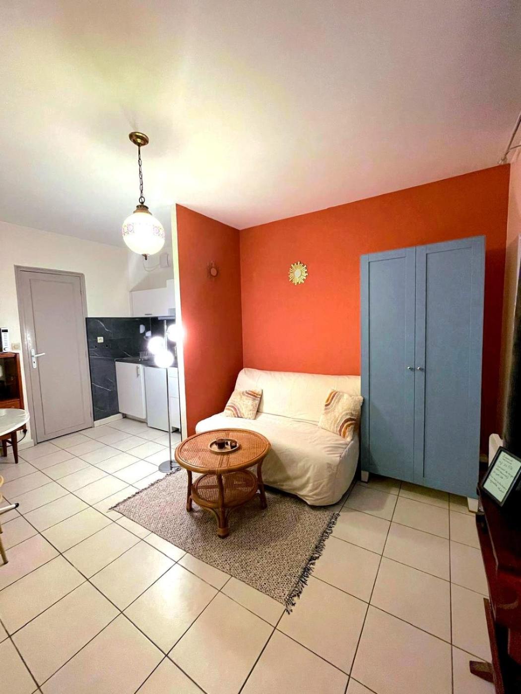 Appartement 1 Chambre. The well-equipped kitchen features a stovetop, a refrigerator, kitchenware and a microwave. The apartment offers a flat-screen TV, a washing machine, a private entrance, a tea and coffee maker as well as a quiet street view. The unit offers 2 beds.