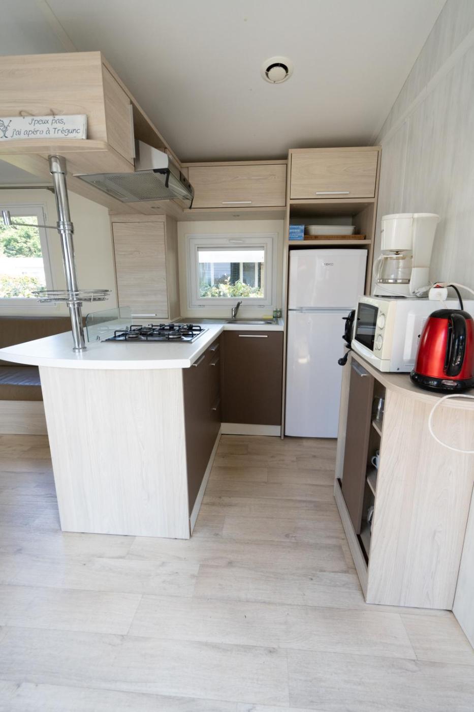 Mobile Home. This mobile home comprises 3 bedrooms, a seating area and 2 bathrooms with a shower. This mobile home features a wardrobe, an electric kettle, a flat-screen TV and an outdoor dining area. The unit offers 6 beds.