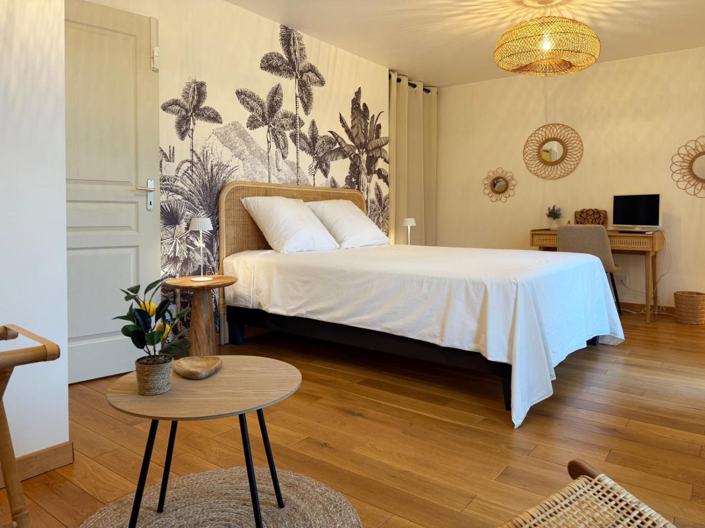Chambre Lit Queen-Size. Guests will have a special experience as this double room features a private pool. The double room offers a wardrobe, an electric kettle, as well as a private bathroom boasting a shower and a hairdryer. The double room provides a flat-screen TV, a high chair for children, parquet floors, heating as well as a quiet street view. The unit has 1 bed.