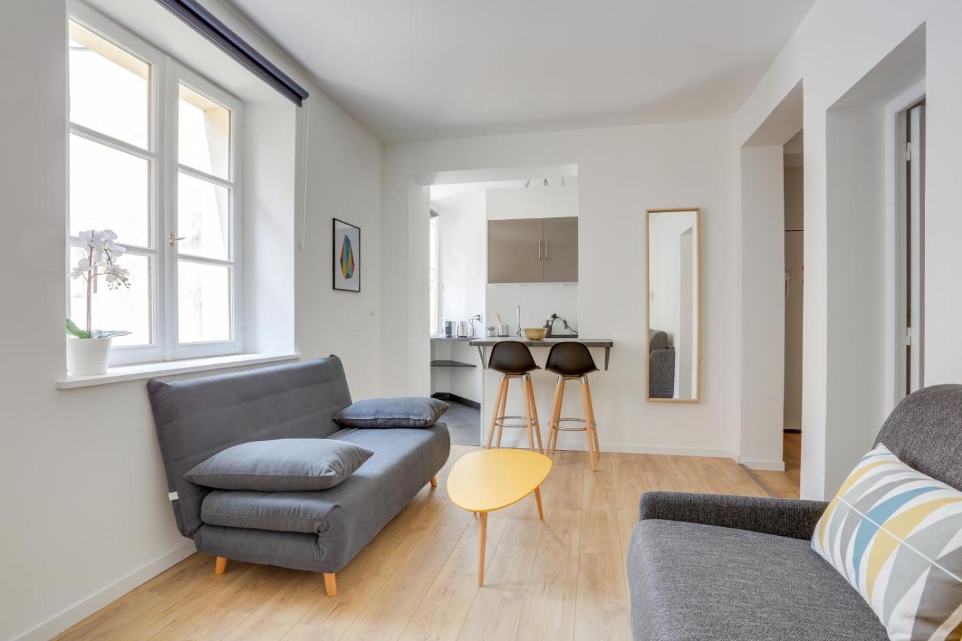 Appartement 1 Chambre. This apartment is comprised of 1 living room, 1 separate bedroom and 1 bathroom with a bath and free toiletries. In the well-equipped kitchen, guests will find a stovetop, a refrigerator, a dishwasher and kitchenware. The apartment offers a washing machine, soundproof walls, a tea and coffee maker, a flat-screen TV with streaming services, as well as ancourtyard view. The unit offers 2 beds.