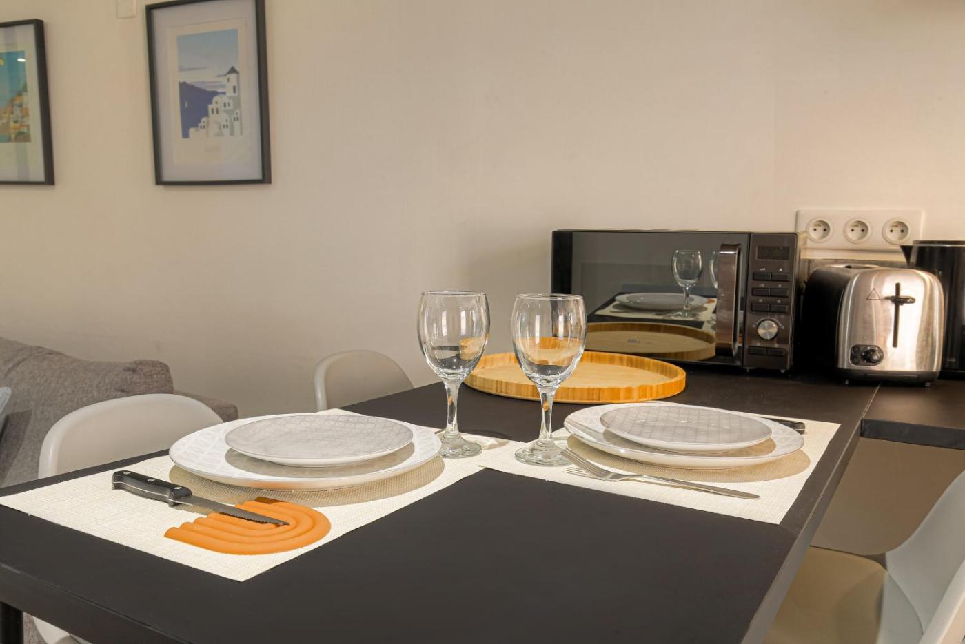 Appartement 1 Chambre. This apartment is comprised of 1 living room, 1 separate bedroom and 1 bathroom with a shower and a hairdryer. In the kitchen, guests will find a stovetop, a refrigerator, a microwave and a toaster. The apartment offers a washing machine, a tea and coffee maker, a seating area, a dining area, as well as a flat-screen TV with streaming services. The unit offers 2 beds.